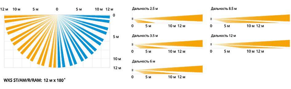 | Дальность обнаружения | от 2,5 до 12 м (регулируемая) | |||